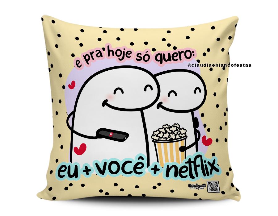 ALMOFADA DIA DOS NAMORADOS - FLORKS EU VOCÊ + NETFLIX