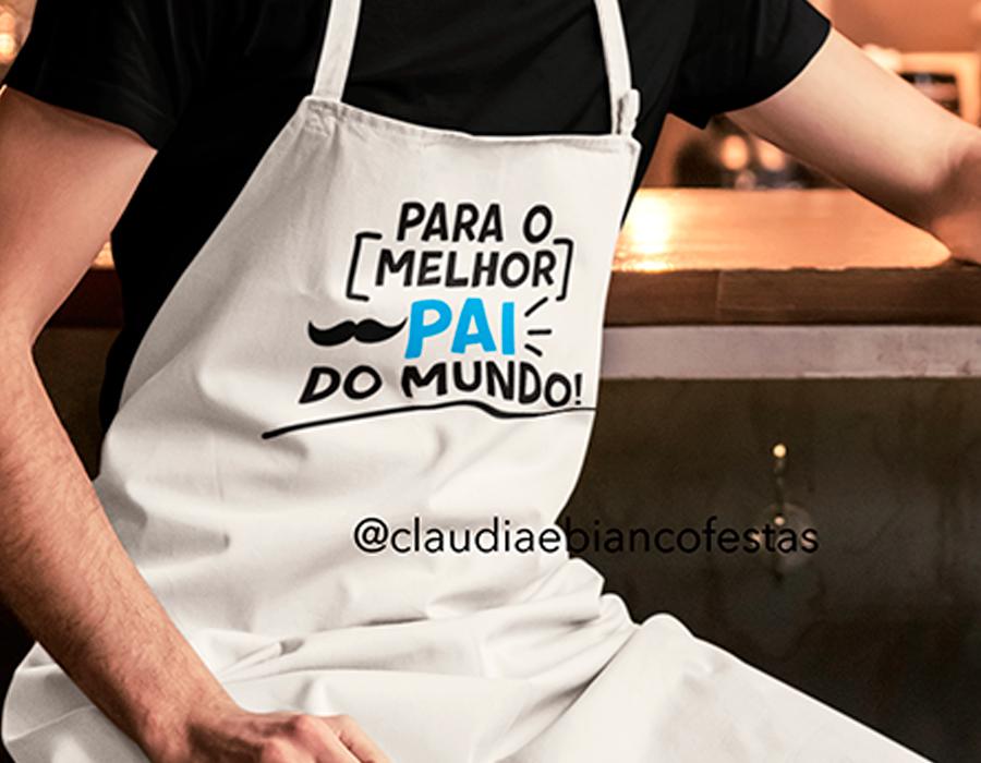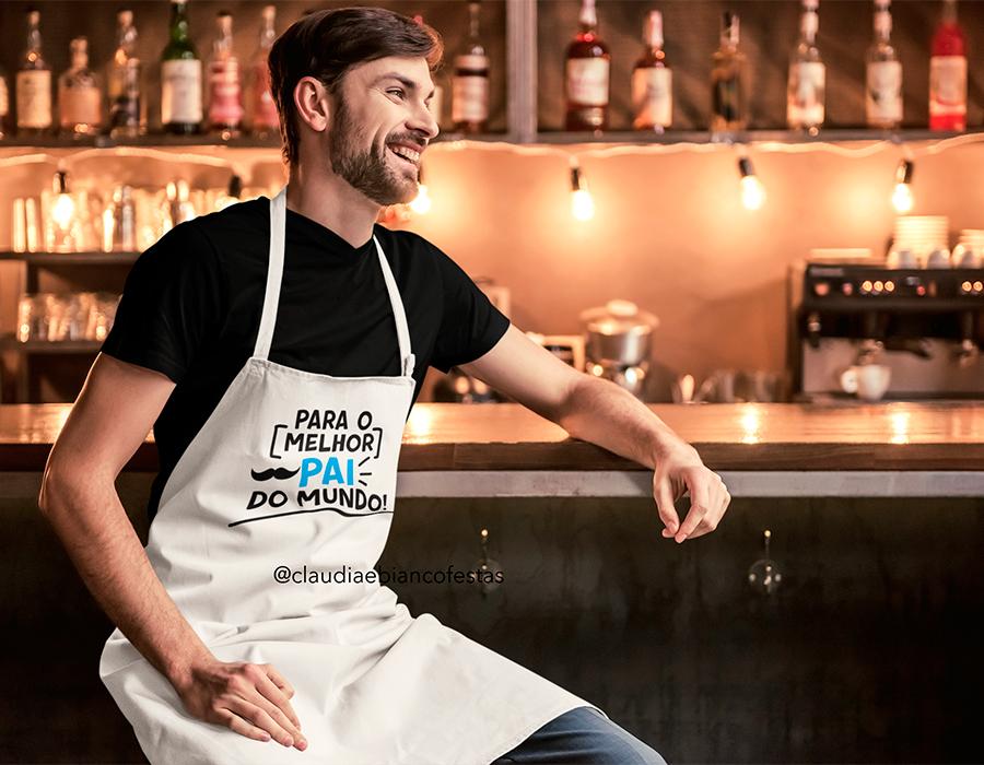 Avental personalizado em tecido oxford para deixar o DIA DOS PAIS ainda mais especial. Sistema de regulagem permitindo ajustar a altura com bolso frontal.