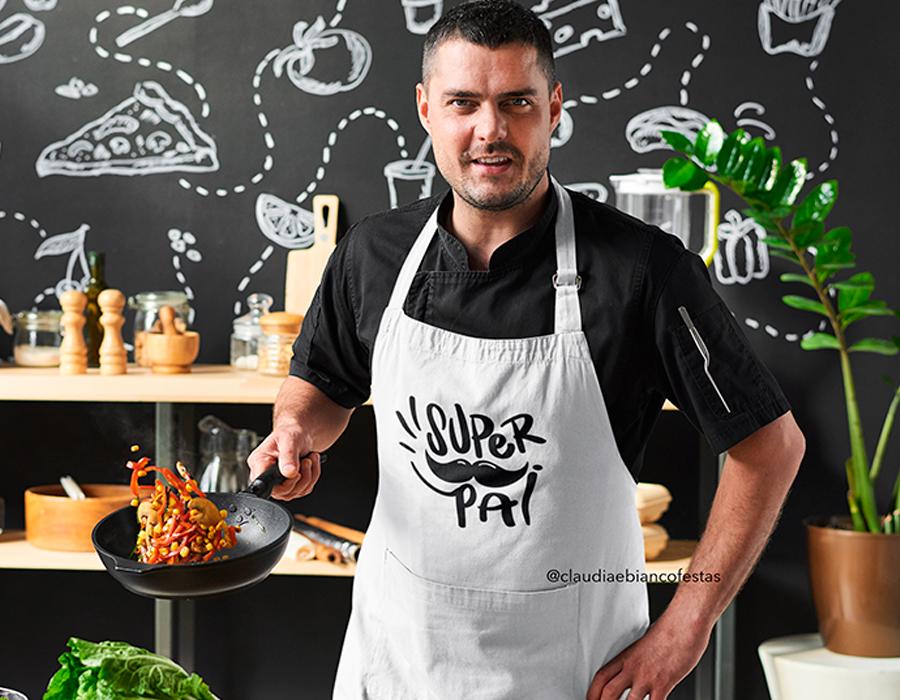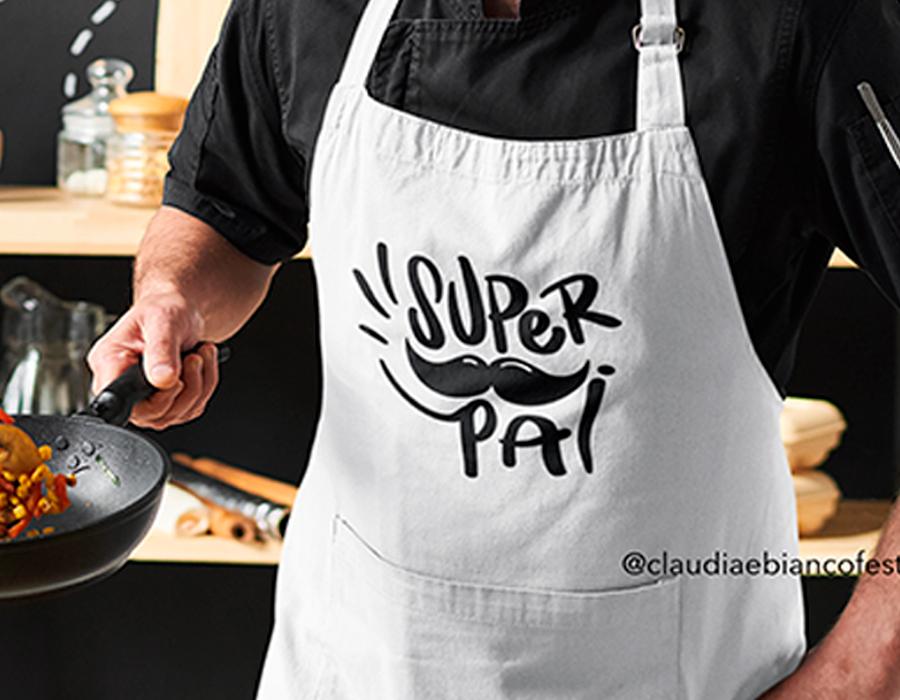 Avental personalizado em tecido oxford para deixar o DIA DOS PAIS ainda mais especial. Sistema de regulagem permitindo ajustar a altura com bolso frontal.