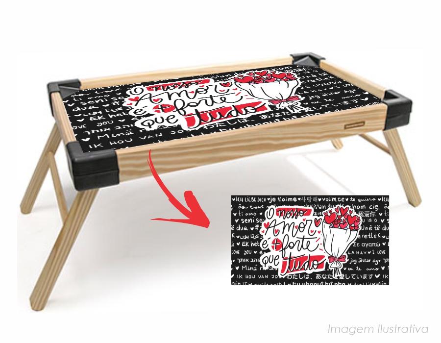 Que tal presentear seu amorzinho com essa linda bandeja personalizada, comece o dia servindo um belo café da manhã na cama a quem você ama! Contando com sofisticação e requinte, transporte pratos, xícaras, talheres e qualquer outro lanche delicioso com a segurança necessária.