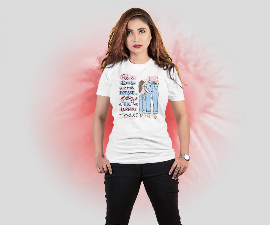 Camiseta pedi a Deus que me fizesse feliz e Ele me tornou mãe