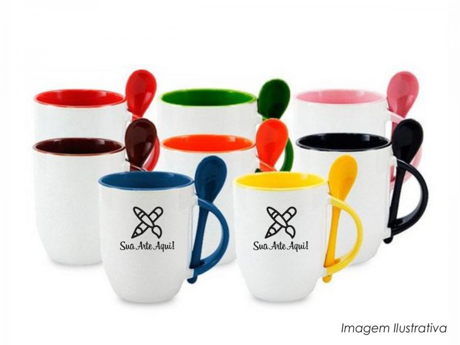 Material: Caneca Cerâmica Branca com Alça e Interior em Cores