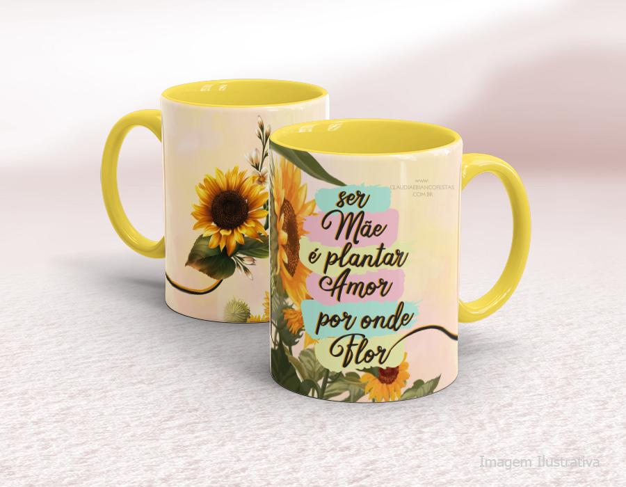 CANECA EM CERÂMICA DIA DAS MÃES - SER MÃE É PLANTAR AMOR POR ONDE FLOR