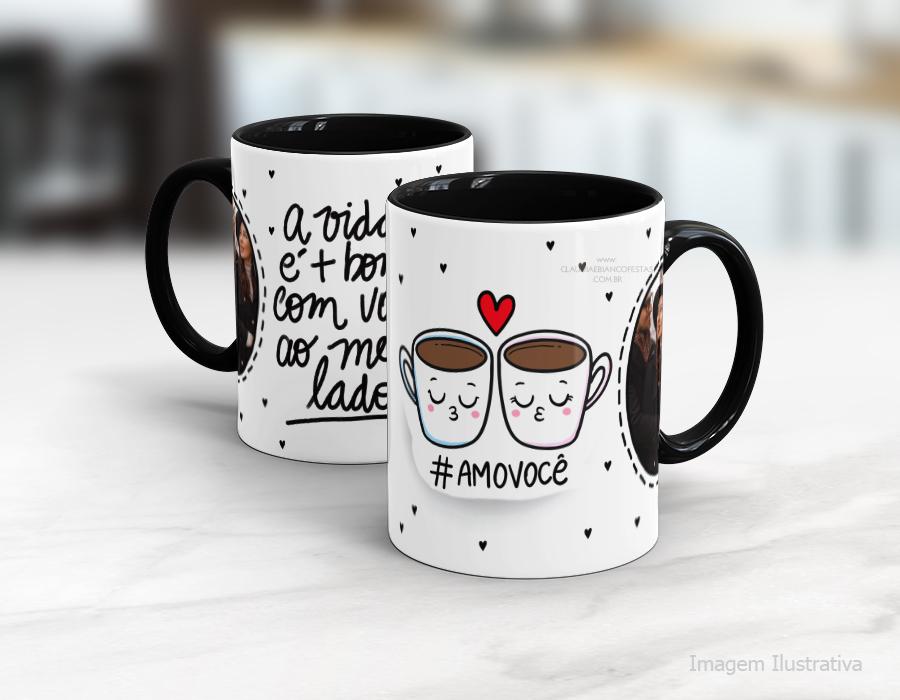 CANECA EM CERÂMICA DIA DOS NAMORADOS - A VIDA É + BONITA AO TEU LADO