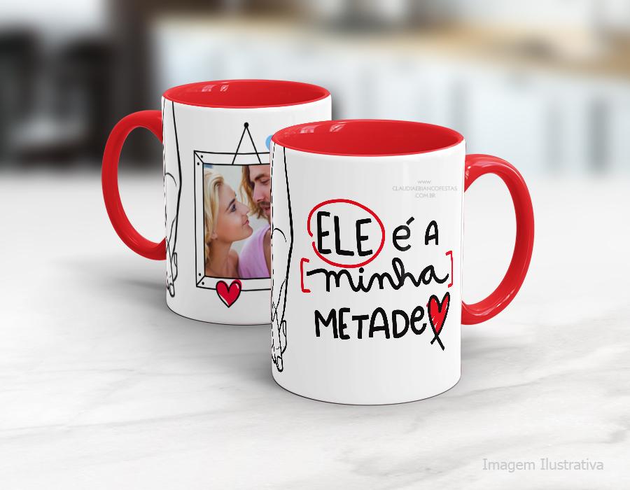 CANECA EM CERÂMICA DIA DOS NAMORADOS - ELE É A MINHA METADE