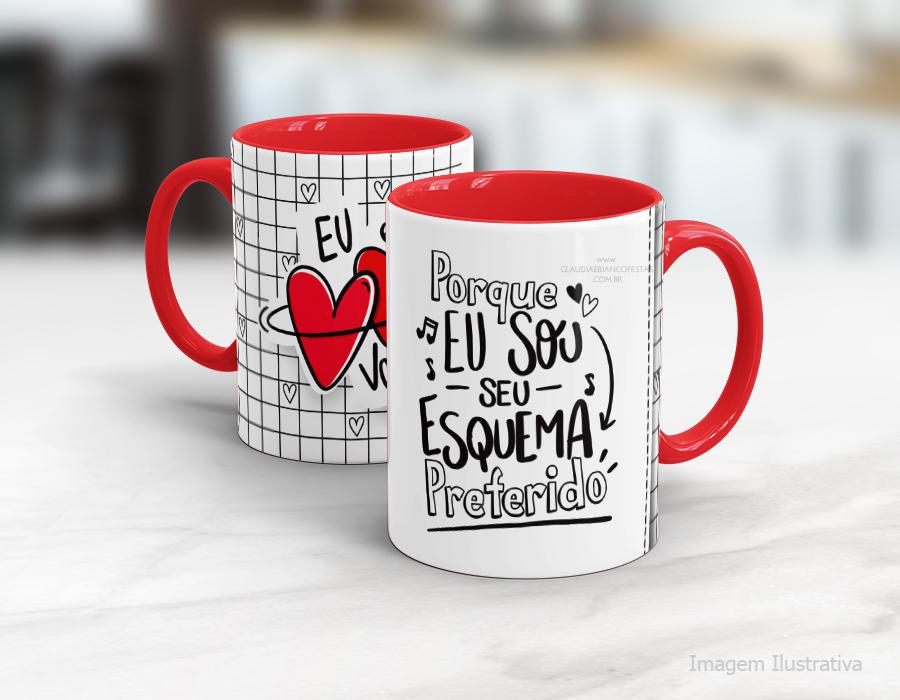 CANECA EM CERÂMICA DIA DOS NAMORADOS - PORQUE EU SOU SEU ESQUEMA PREFERIDO