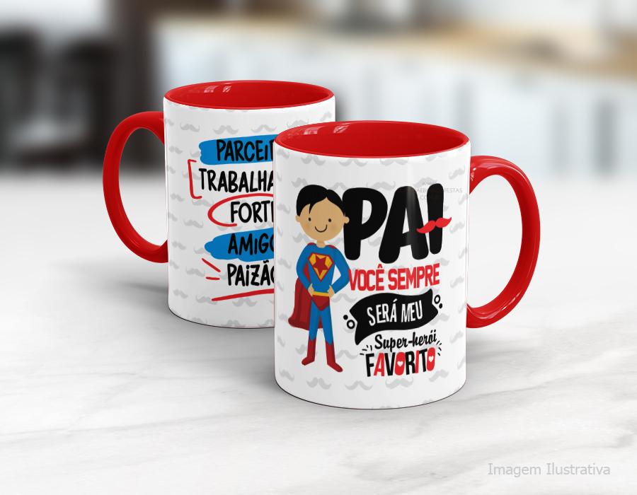 CANECA EM CERÂMICA DIA DOS PAIS - PAI VOCÊ SEMPRE SERÁ MEU SUPER HERÓI FAVORITO