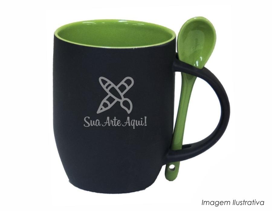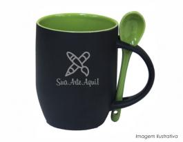 CANECA EM CERÂMICA MÁGICA COM COLHER