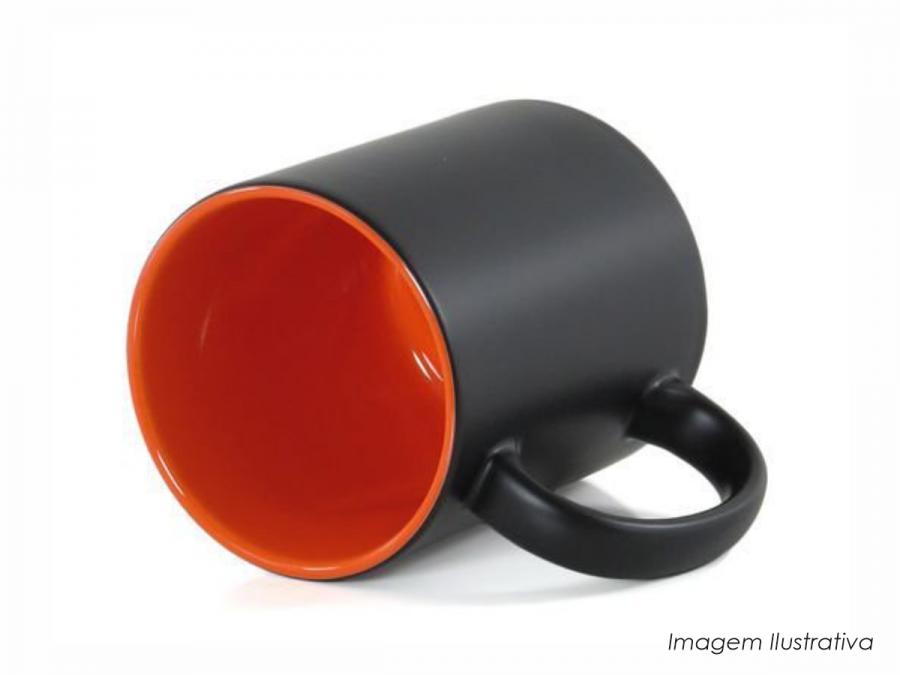 CANECA EM CERÂMICA MÁGICA FOSCA ALÇA E INTERIOR EM LARANJA