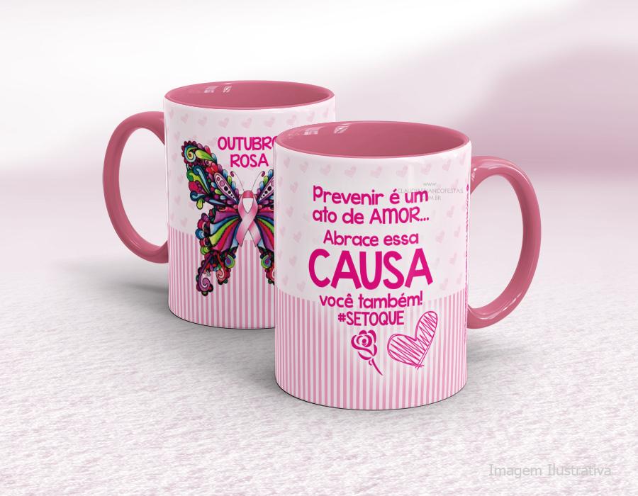 CANECA EM CERÂMICA OUTUBRO ROSA - PREVENIR É UM ATO DE AMOR