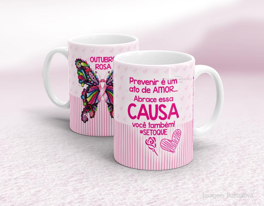 CANECA EM CERÂMICA OUTUBRO ROSA - PREVENIR É UM ATO DE AMOR