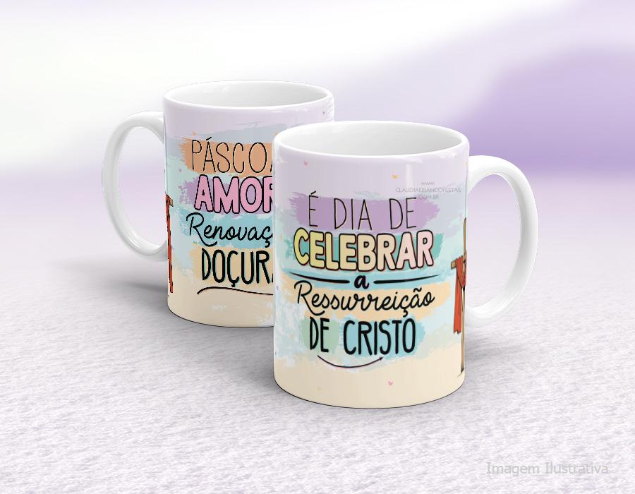 CANECA EM CERÂMICA PÁSCOA - É DIA DE CELEBRAR A RESSURREIÇÃO DE CRISTO