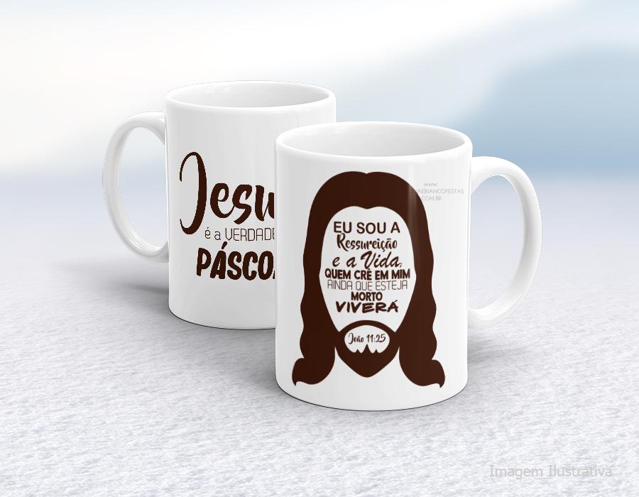 CANECA EM CERÂMICA PÁSCOA - JESUS É A VERDADEIRA PÁSCOA