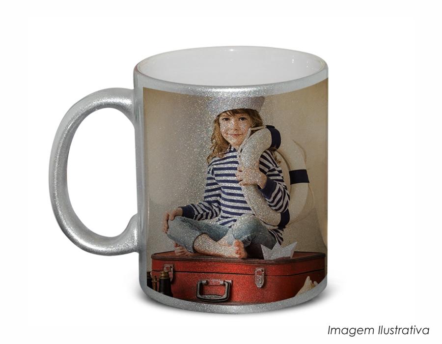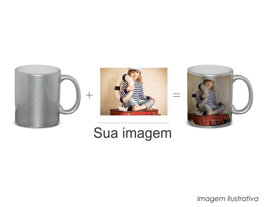 CANECA EM CERÂMICA PRATEADA ALTO BRILHO