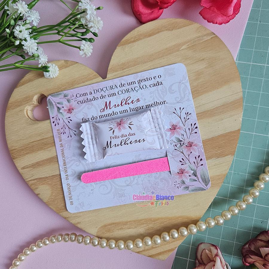 Cartao bala e Lixa Lembrancinha Dia da Mulher