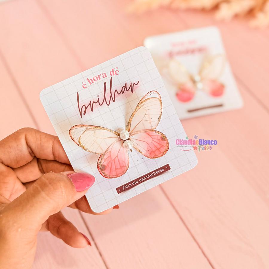 CARTÃO BORBOLETA 3D DOURADO BRINCO PÉROLA LEMBRANCINHA DIA DA MULHER
