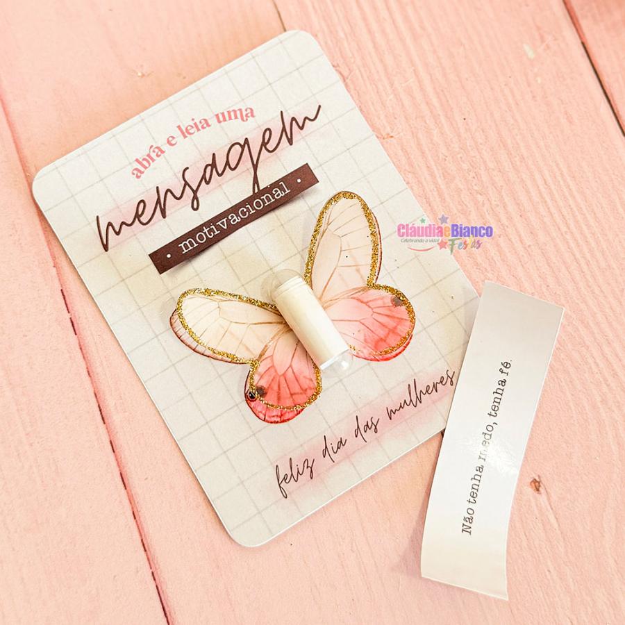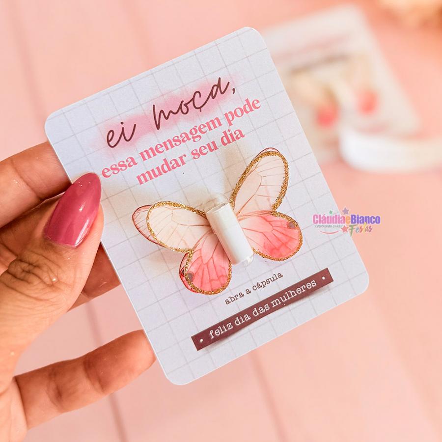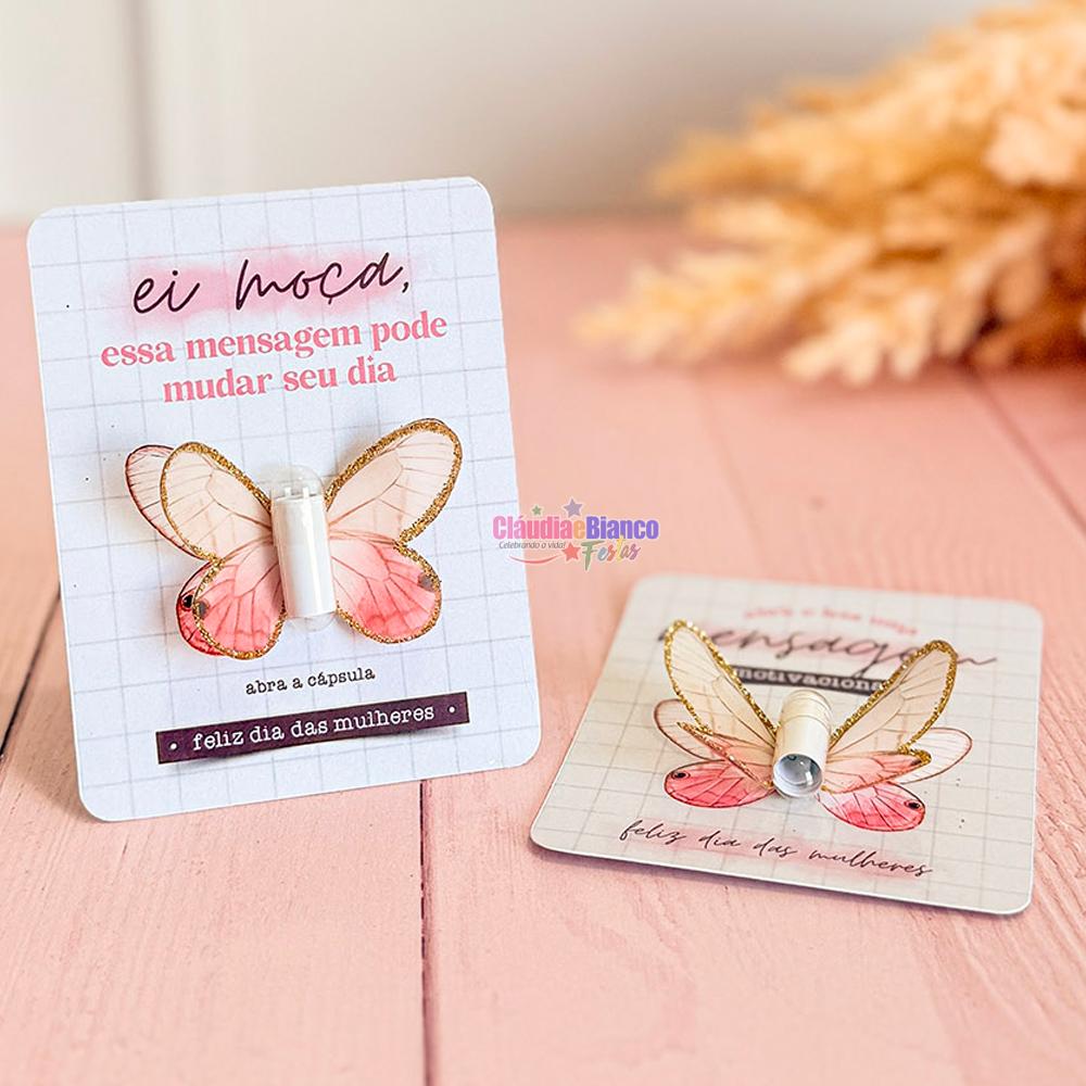 CARTÃO BORBOLETA 3D DOURADO CÁPSULA MENSAGEM DE DEUS LEMBRANCINHA DIA DA MULHER