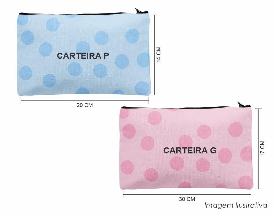 - Disponibilizamos dois tamanhos: Carteira P (20cm Largura X 14cm Altura) | Carteira G (30cm Largura X 16cm Altura)