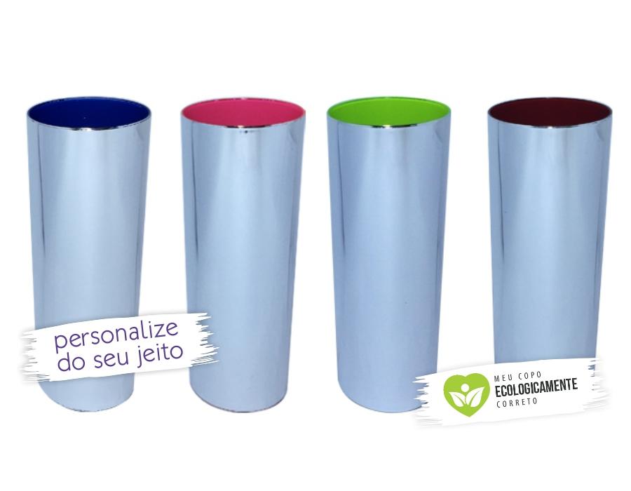 Copo long drink metalizado prata e interior em cores, além de ter excelente acabamento possui reforço de boca, personalizamos com sua marca, mensagem e cor do jeitinho que definir. Excelente opção para servir bebidas aos seus convidados de forma elegante e prática. Como o acrílico não é descartável, você não precisa se preocupar com copos quebrando e causando acidentes durante sua festa.