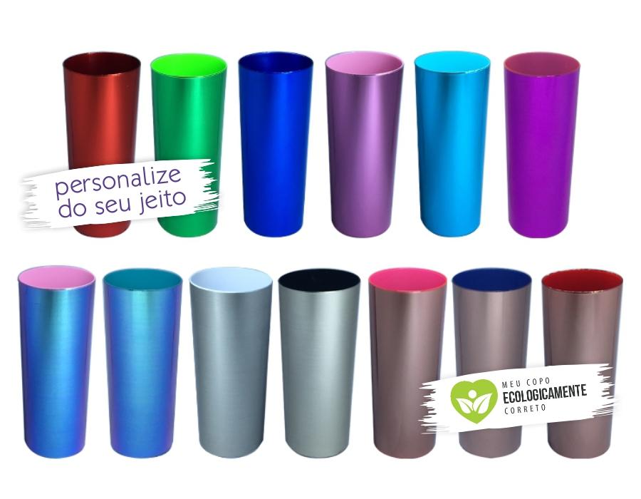 O copo long drink metalizado colorido com interior em cores é fabricado em PS Cristal virgem (atóxico), conhecido também como acrílico. Esse material é usado principalmente na fabricação de utilidades domésticas e é excelente para gravação e personalização. Ele é muito parecido com os copos de vidro, porém é de plástico.