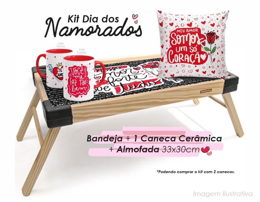 Kit Bandeja + Caneca + Almofada - Feliz dia dos Namorados