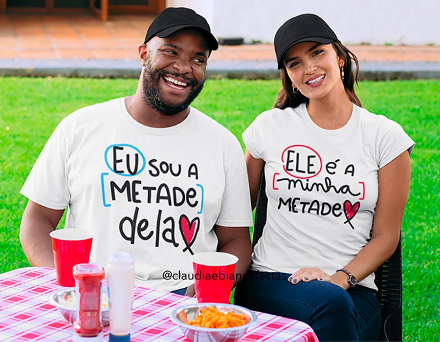 KIT CAMISETA DIA DOS NAMORADOS - EU SOU A METADE DELE(A)