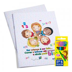 Acompanha de Brinde Giz de Cera com 6 cores, já enviamos embalada as revistinhas no saquinho transparente e fechada com lapela personalizada!