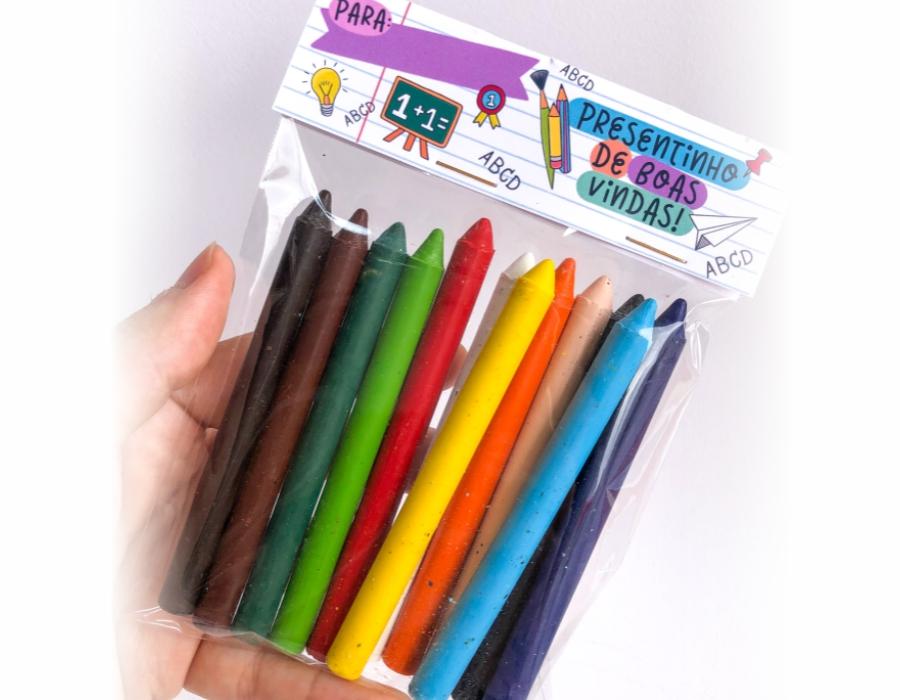 Saquinho com giz de cera volta às aulas. Se você é professor, dono de escola, diretor, trabalha com transporte escolar, lojista de loja infantil, ou simplesmente quer presentear um coleguinha de escola. Esse é o mimo ideal para dar de lembrança nesse retorno às aulas.