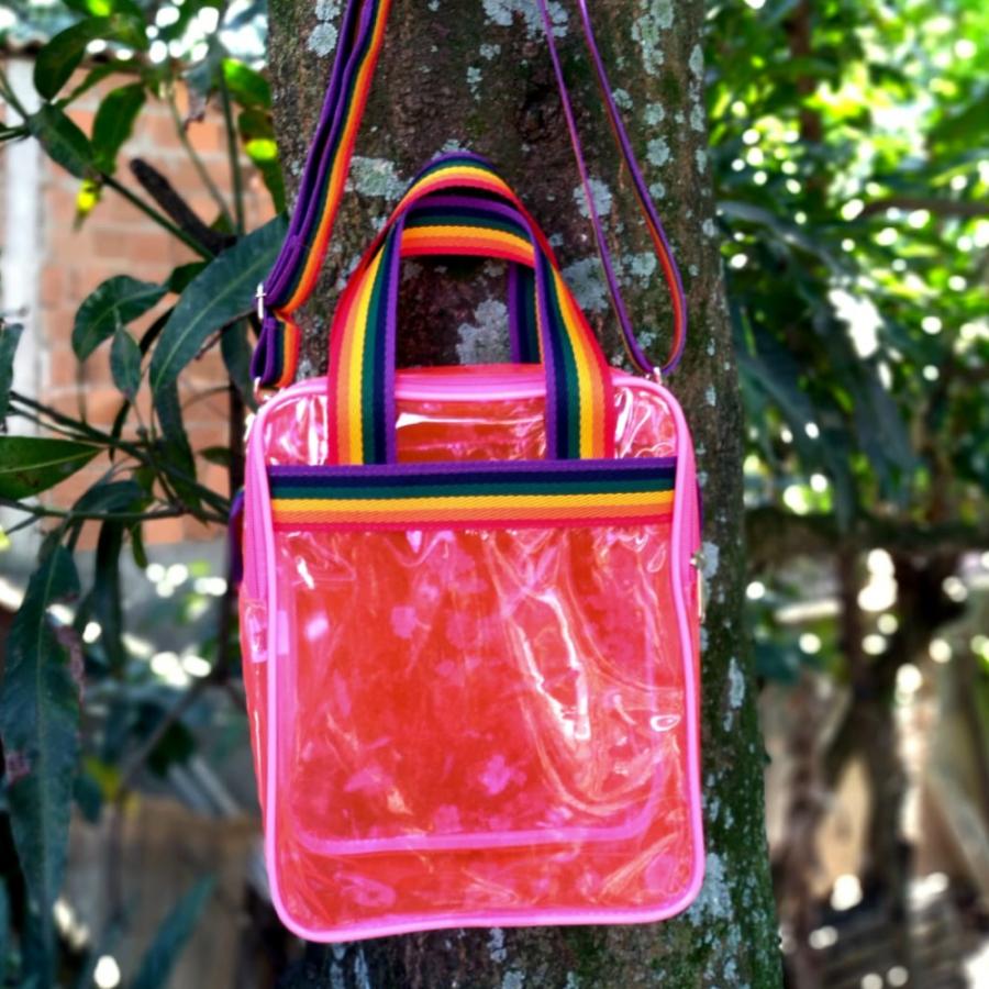 Shoulder Bag Luxo Neon 20x25xcm confeccionado em plástico cristal neon alça luxo longa transversal com regulador e mosquetão em metal. Excelente qualidade e durabilidade.