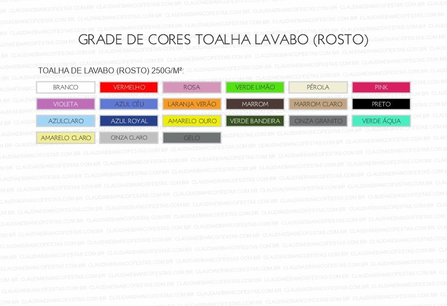 Toalha de lavabo (rosto) gramatura: 250g/m² com barra personalizada, 21 opções de cores da toalha para sua escolha. 1-9 = R$ 20,00 | 10-49 = R$ 15,00 | 50-99 = R$ 11,50 | 100+ = R$ 10,50 (GRADE DE CORES NAS FOTOS)